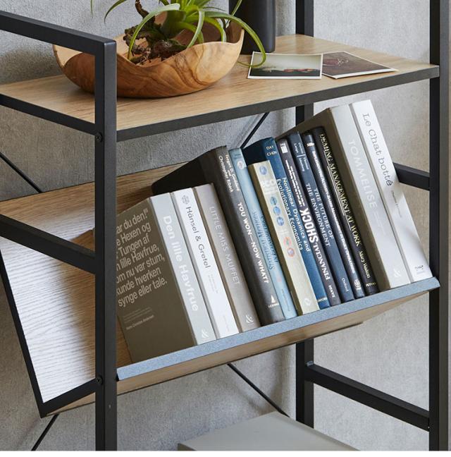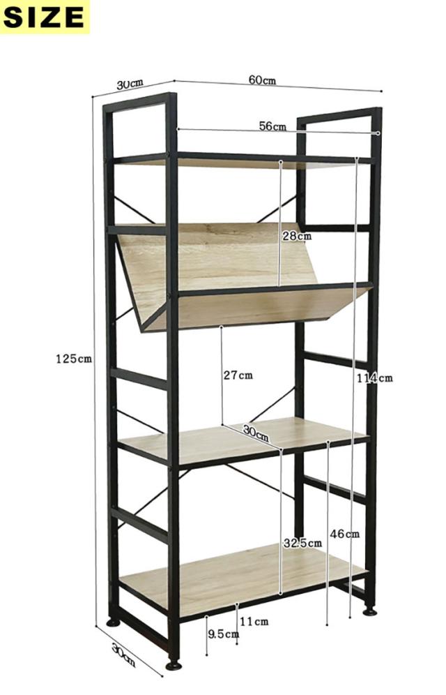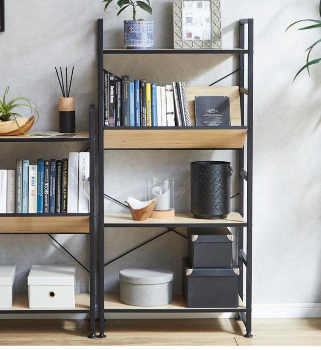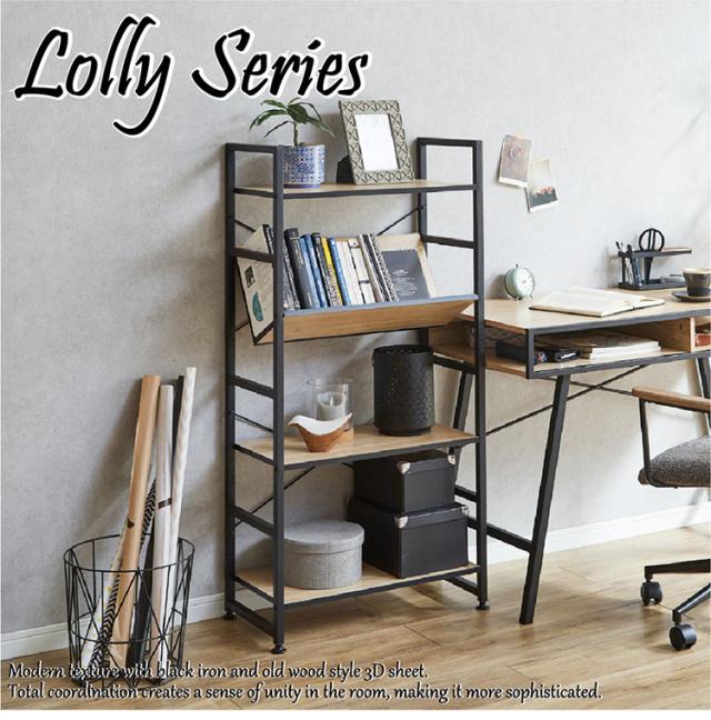シェルフ 4段 幅60cm 収納ラック ブラックアイアン 古木風 本棚 書棚 収納棚 おしゃれ 書斎 リビング ワンルーム デスクサイド(代引不可)【送料無料】