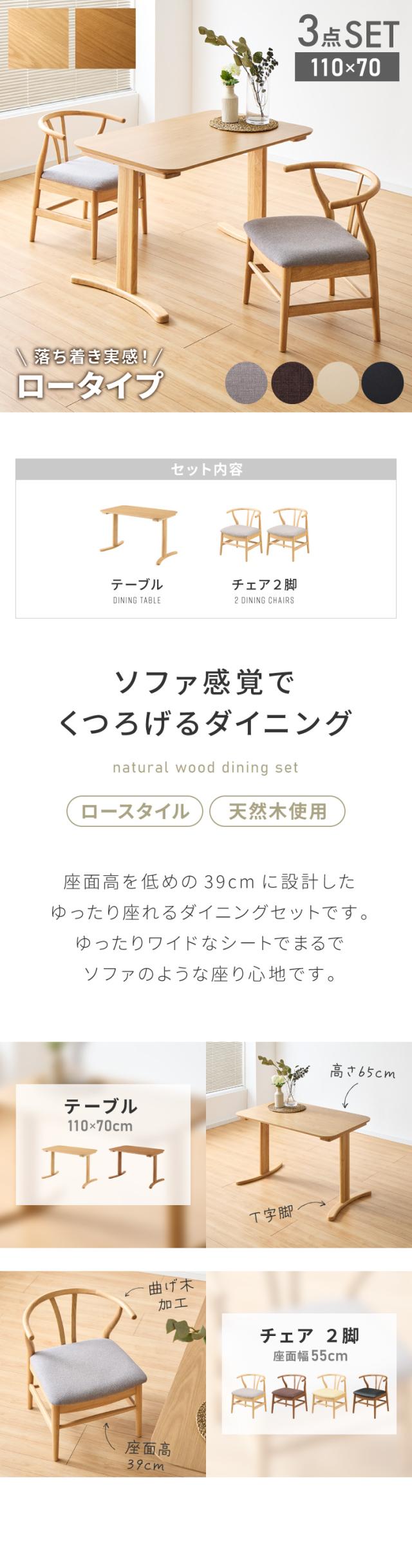 北欧デザインチェア ローガン 座面高39cm 3点セット 2人掛け ダイニングセット 3点 ダイニングチェア ロータイプ デザイナーズチェア アームチェア 木製チェア 食卓椅子 肘付き 完成品(代引不