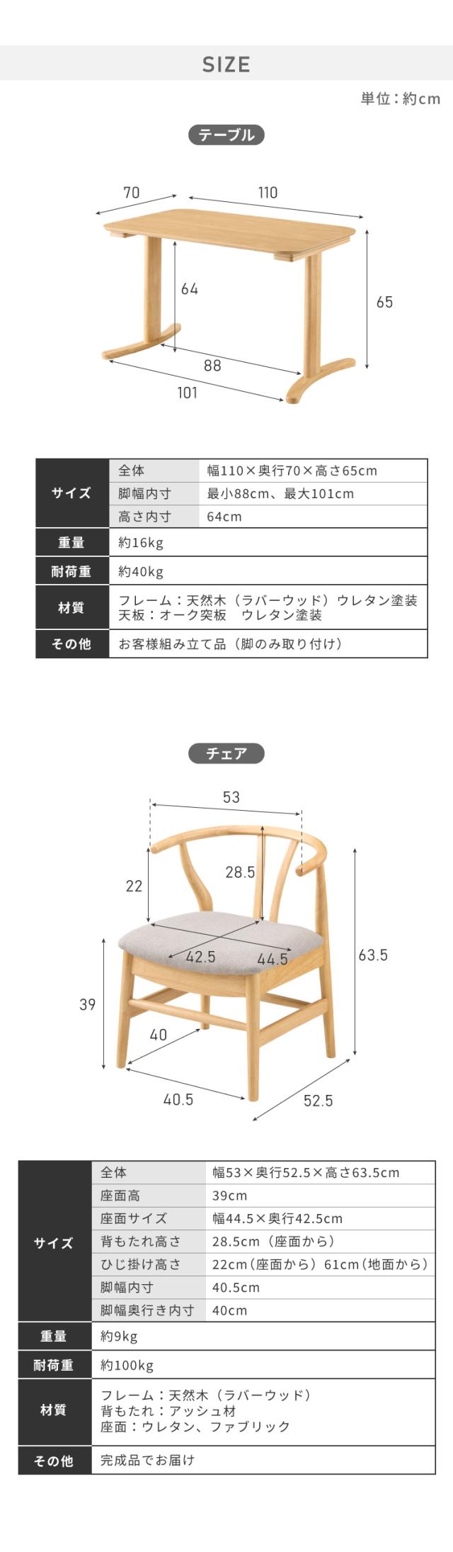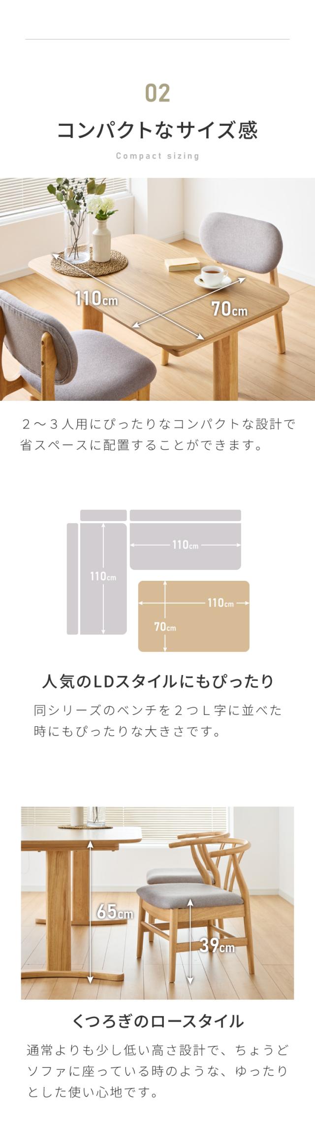 3点セット 幅110cmテーブル+チェア2脚 | 4点セット 幅140cmテーブル+チェア2脚+ベンチ | 4点セット 幅140cmテーブル+チェア2脚+ベンチ 専用背もたれ付き | 5点セット 幅140cmテーブル+チェア4脚 |