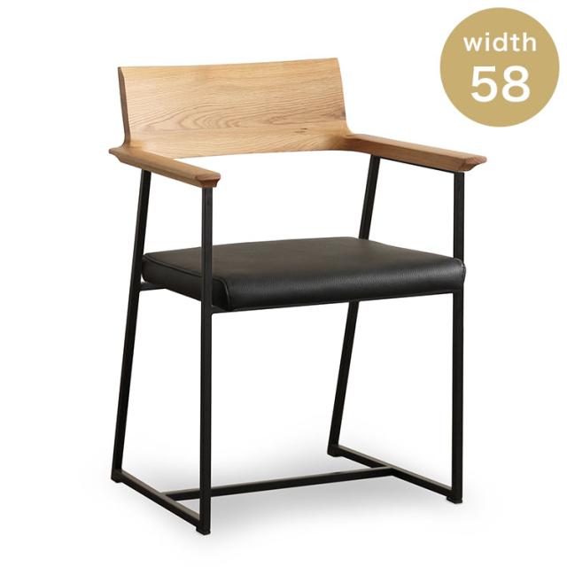 オーク素材×アイアン脚で肘付きのモダンテイストのダイニングチェアです。スタイリッシュな雰囲気を演出します。