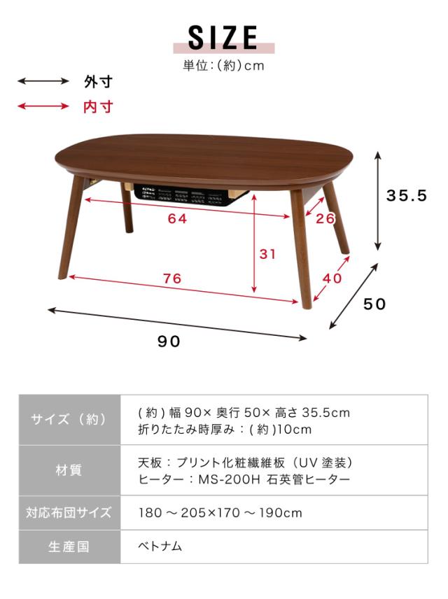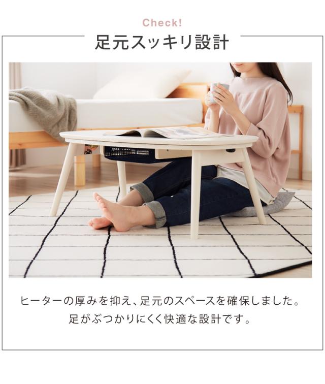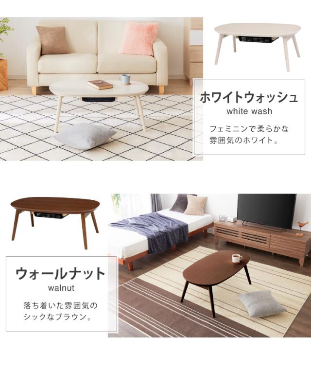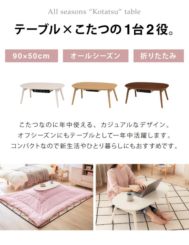 こたつテーブル 折れ脚 カジュアルこたつ 幅90cm 楕円形 オーバル 炬燵 北欧 おしゃれ かわいい 90×50cm こたつ(代引不可)【送料無料】