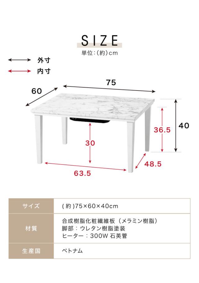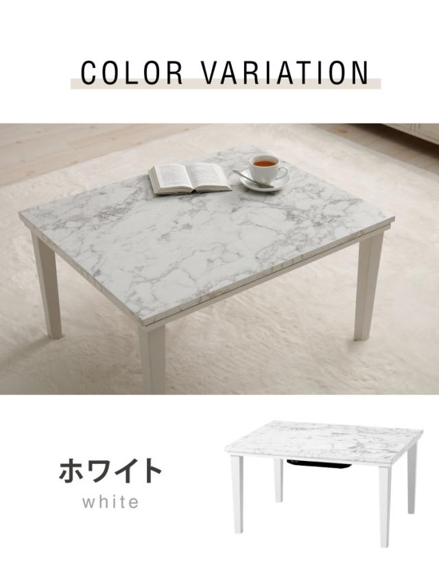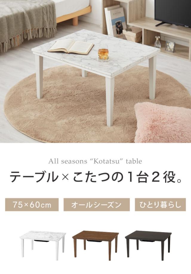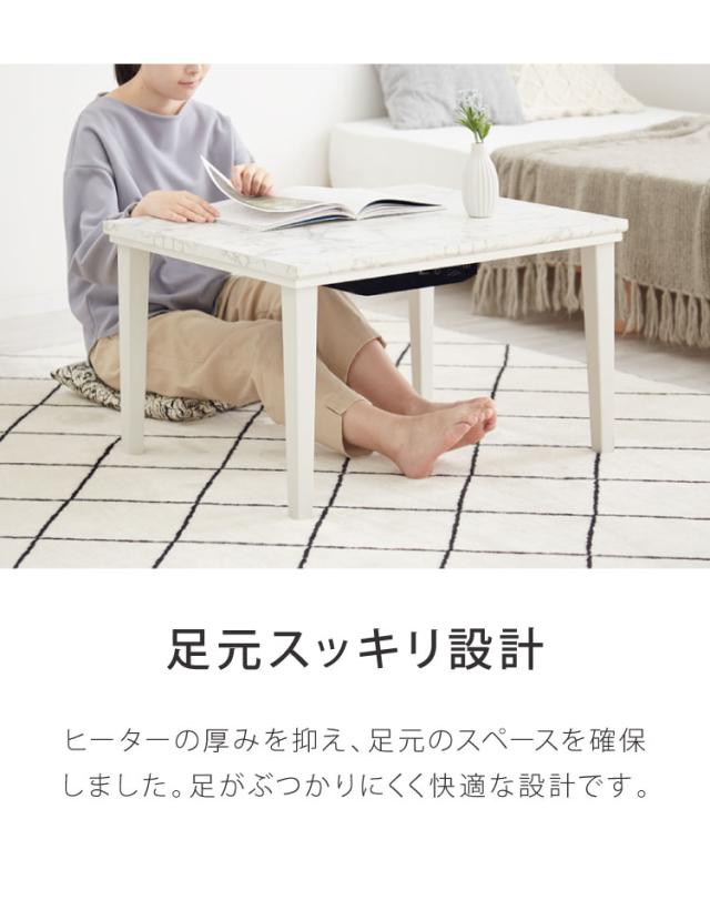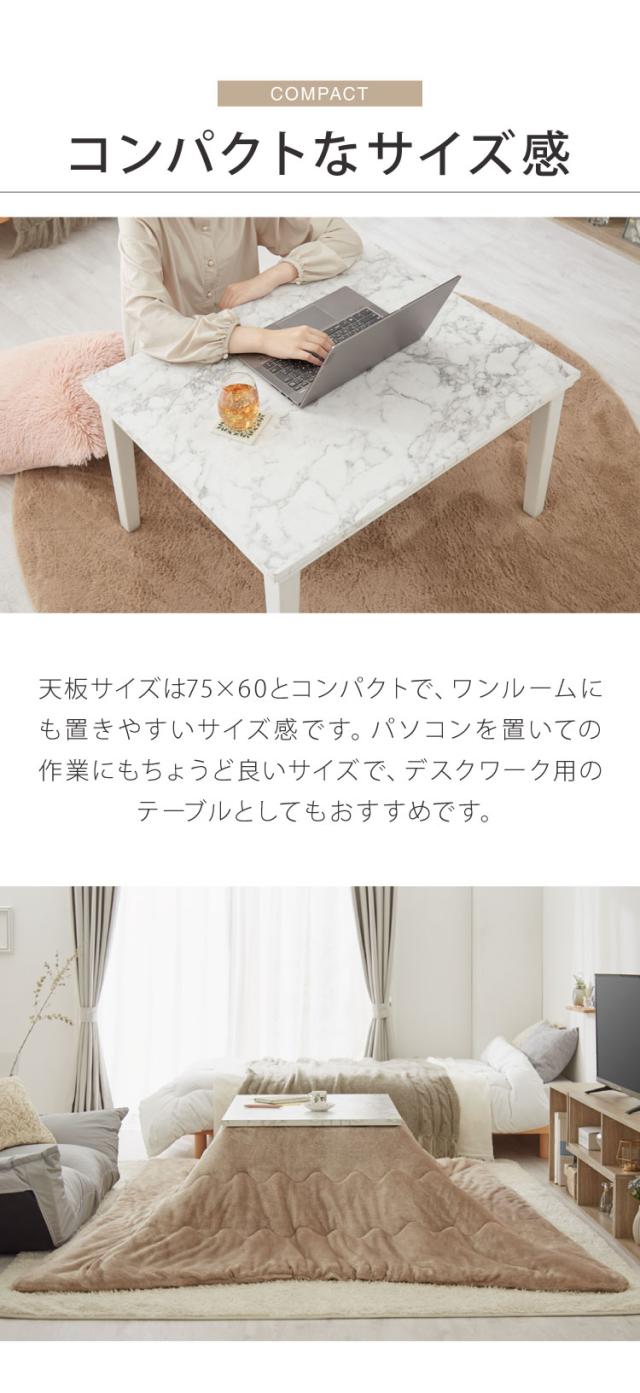 大理石調 こたつテーブル 75×60cm カジュアルこたつ ホワイト 白 マーブル調 炬燵 北欧 おしゃれ かわいい オールシーズン こたつ センターテーブル ローテーブル あったか コンパクト(代引不可)【送料無料】
