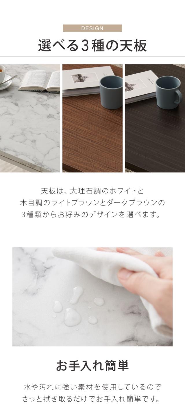 お部屋の雰囲気に合わせて、大理石調のホワイトと、木目調のブラウンカラーからお選びいただけます。