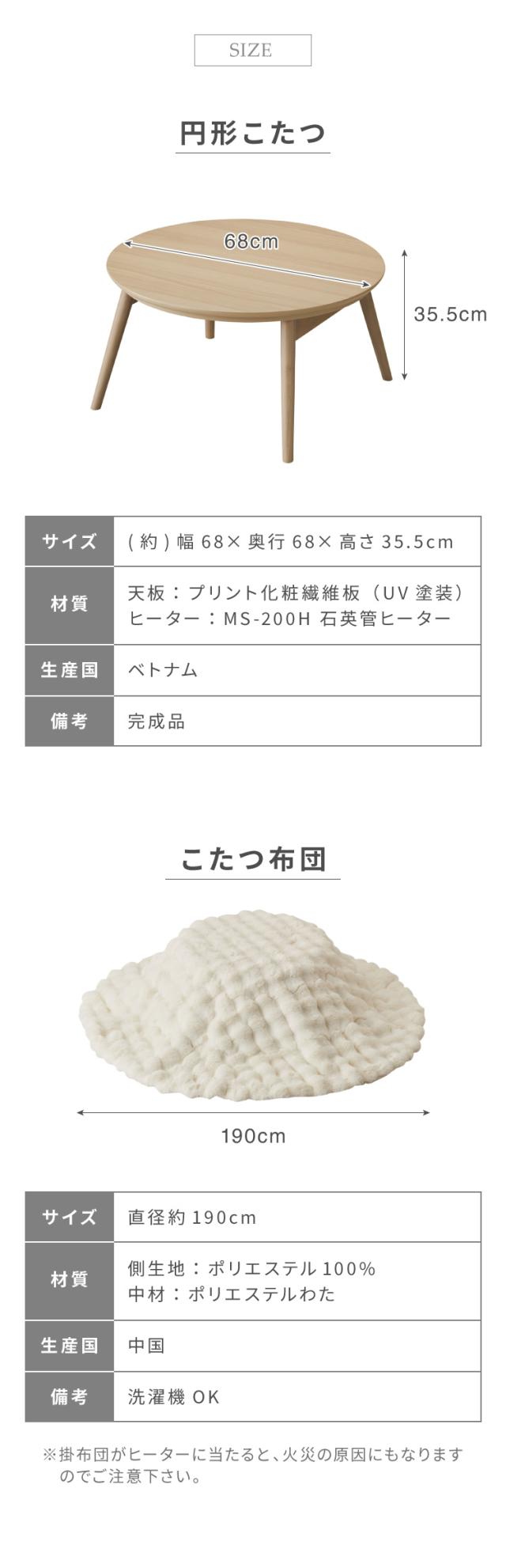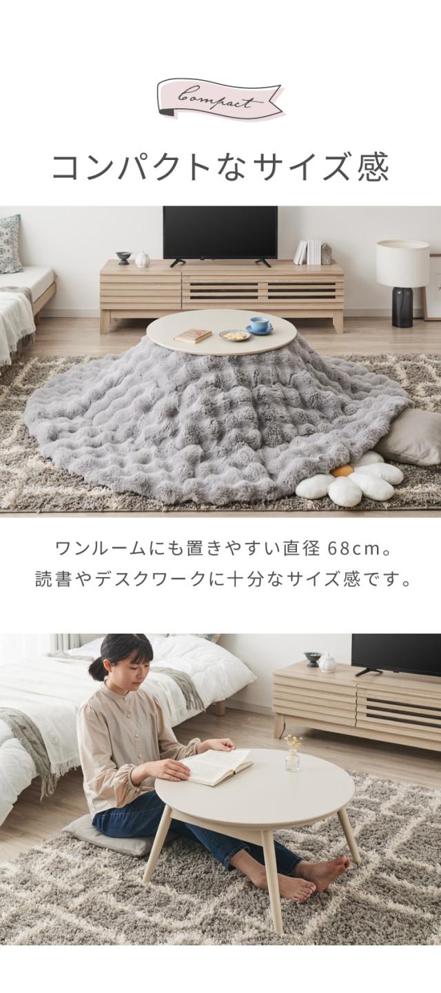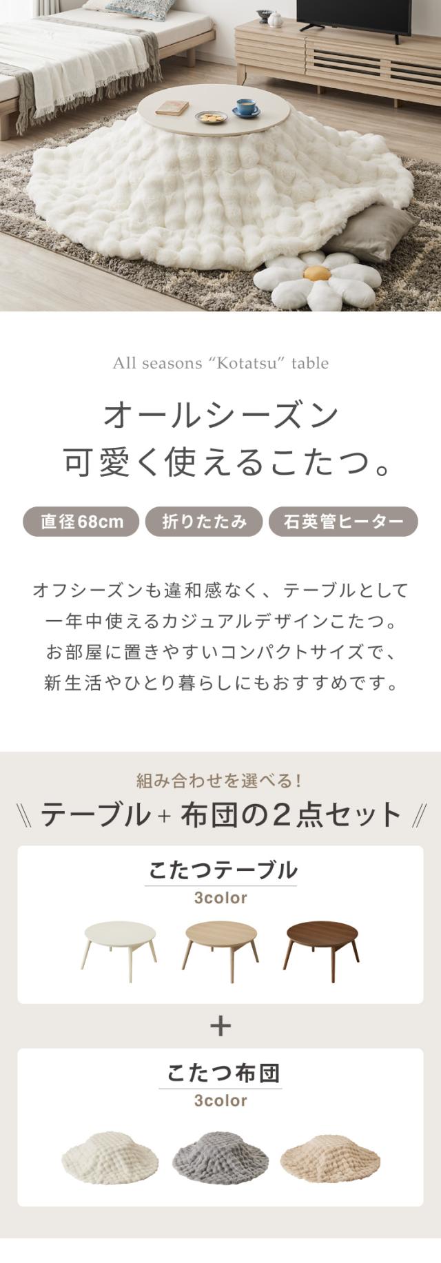 カジュアルこたつ 布団付き 2点セット 円形テーブル+もこもこ布団 幅68cm 折れ脚 炬燵 コタツ 北欧 ふわふわ こたつ布団 ふわとろ かわいい 可愛い センターテーブル ローテーブル おしゃれ(代引不可)【送料無料】