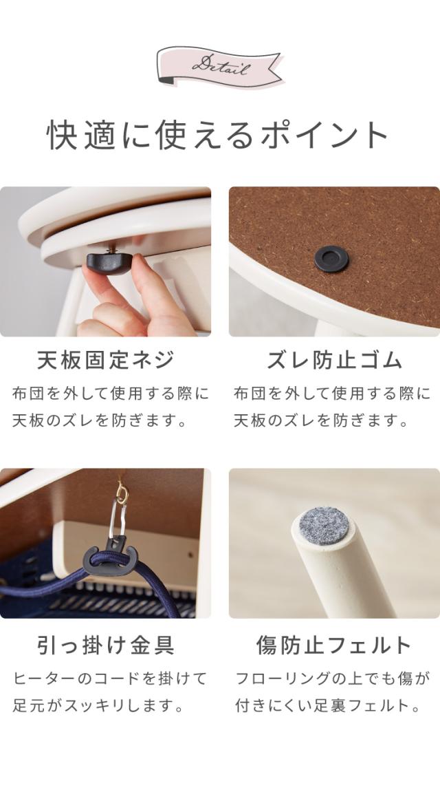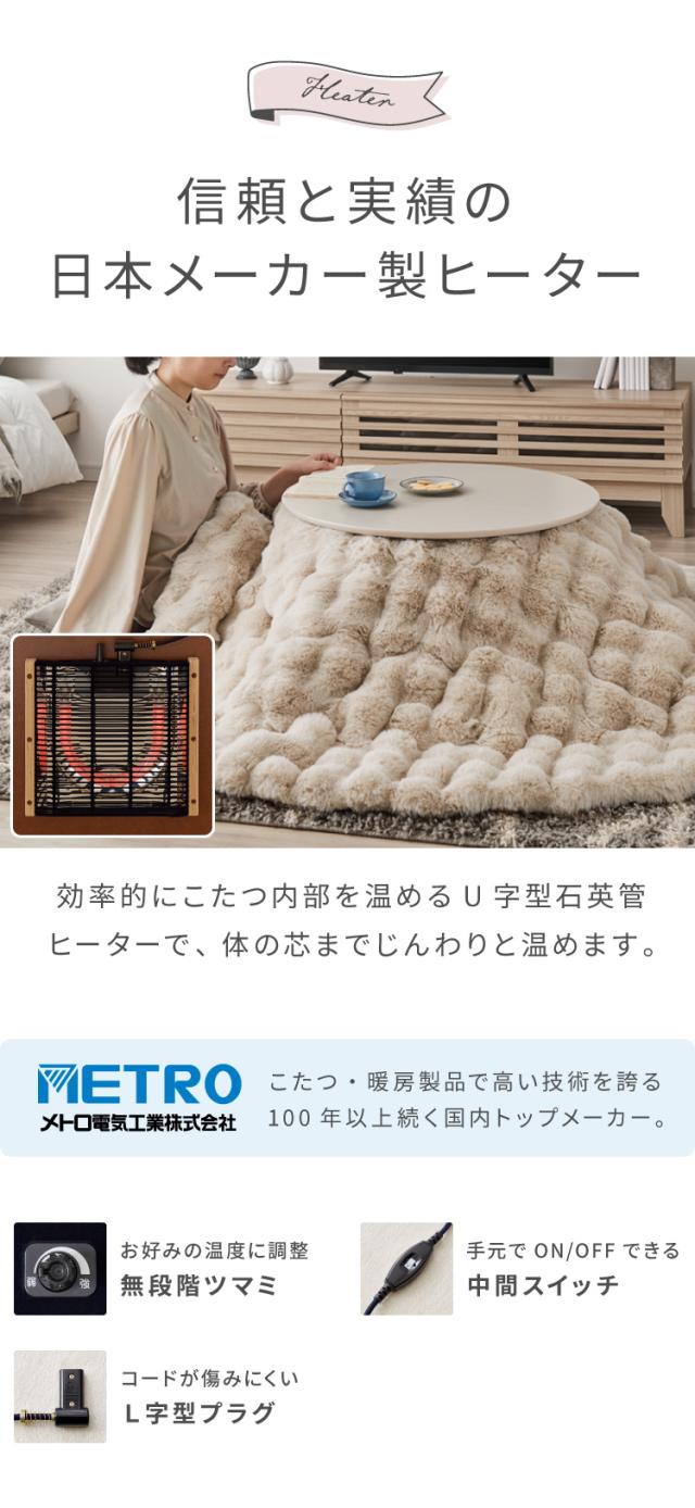 こたつ、暖房製品で高い技術を誇るメトロ電気工業株式会社のヒーターを採用。