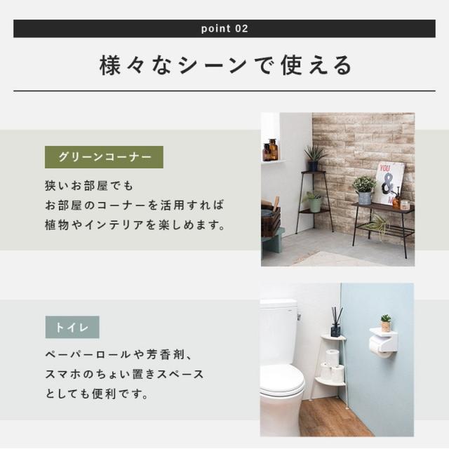 コーナーラック 完成品 2段 オープンラック 棚 スリム ディスプレイラック アイアン スチール リビング キッチンラック トイレラック 玄関(代引不可)【送料無料】