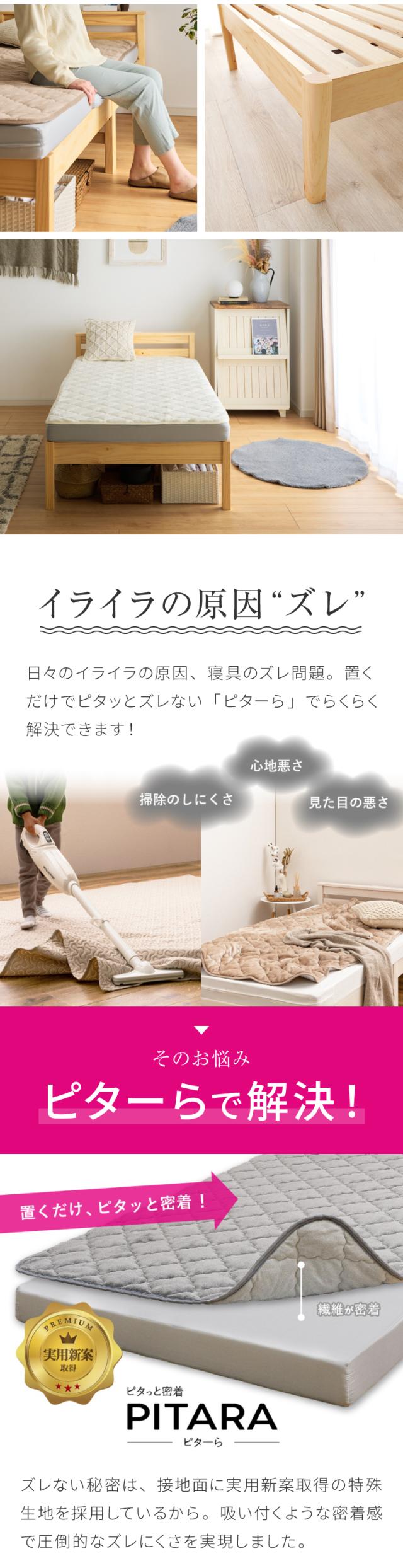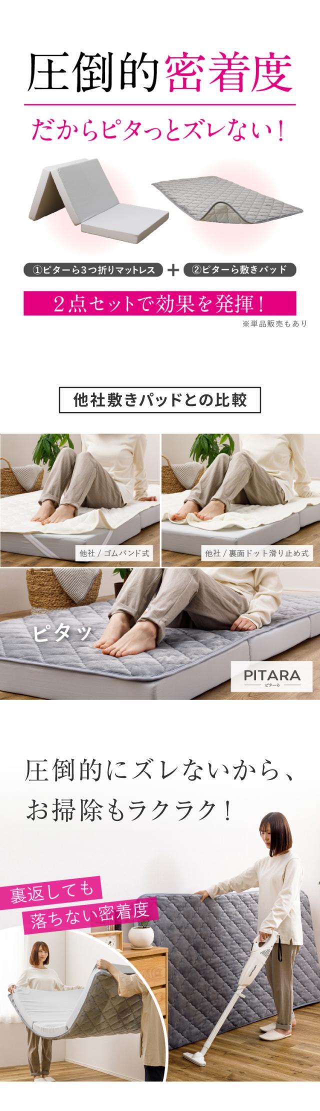 実用新案取得、ズレないマットレス、敷きパッド、ベッドフレーム、セット、PITARA、ピタ—ら、シングル、S、ゴムなし、ずれない、置くだけ、シーツ、三つ折り、高反発、ウレタン、マットレス、セット