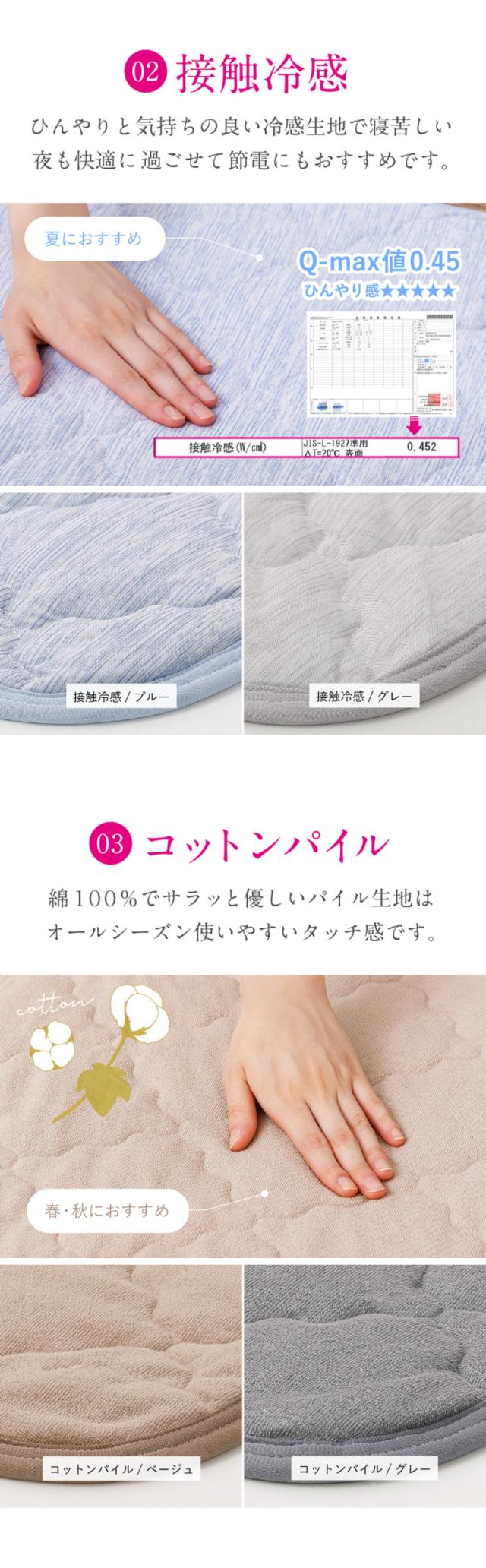 接触冷感:Q-max 0.45の、ひんやりと気持ちいい冷感生地で、節電にもお勧めです。