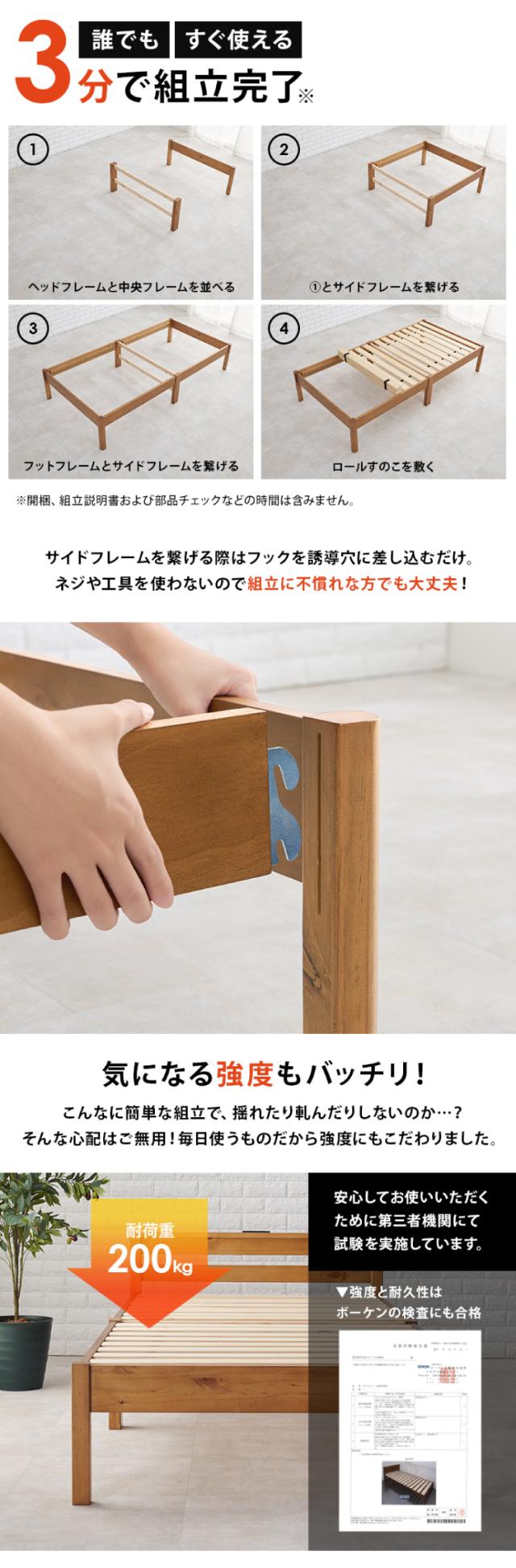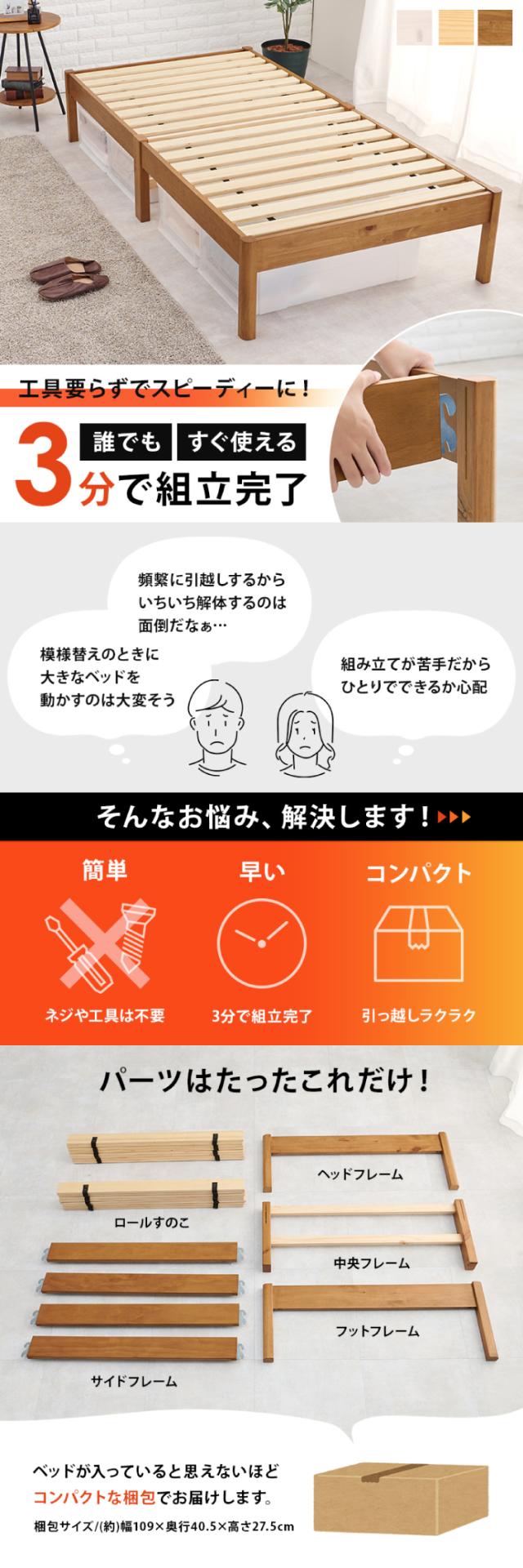 工具不要・組立簡単のベッドフレームがセットになり、届いてすぐに使えます!