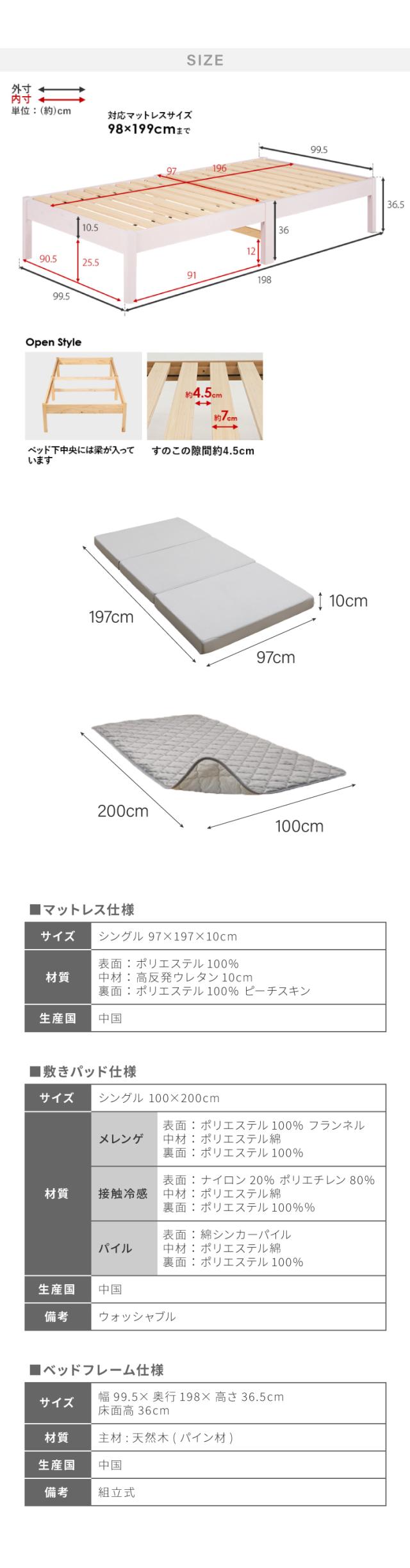 専用マットレス・専用敷きパッド・ベッドフレーム 3点セット