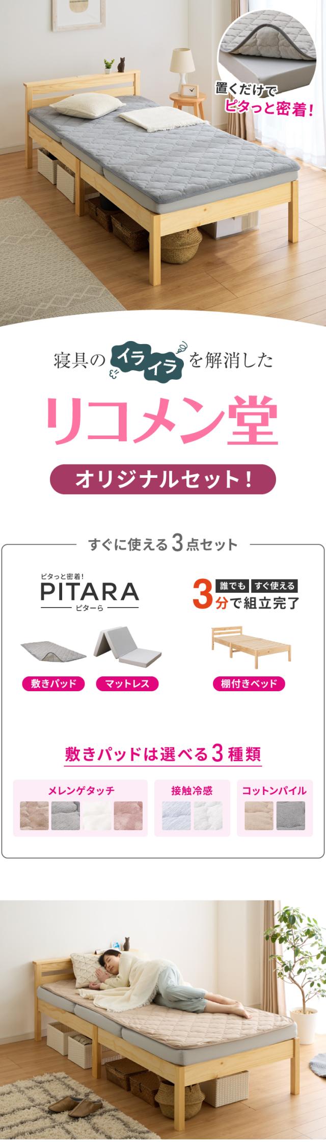 【絶対ズレない】 敷パッド マットレス 棚付きベッド 3点セット シングル 実用新案取得 【ピターら】 敷きパッド 工具不要・組立簡単 ベッド ベッドフレーム 3つ折りマットレス ズレない(代