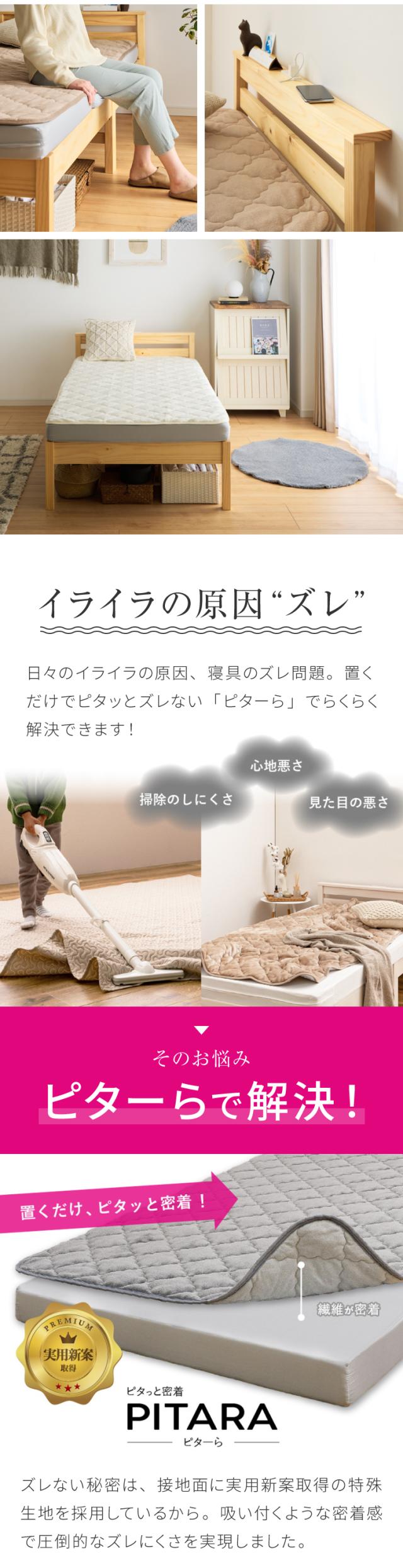 実用新案取得、ズレないマットレス、敷きパッド、ベッドフレーム、セット、PITARA、ピタ—ら、シングル、S、ゴムなし、ずれない、置くだけ、シーツ、三つ折り、高反発、ウレタン、マットレス、セット