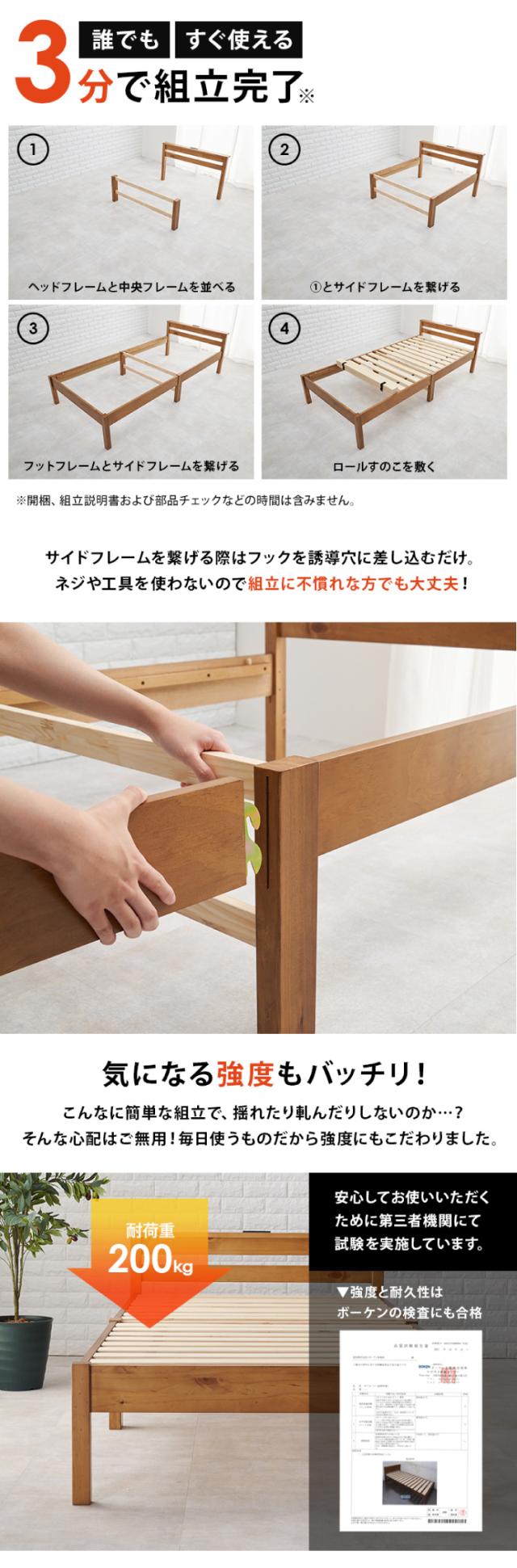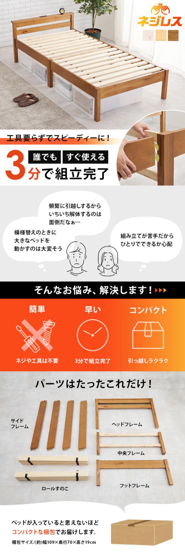 工具不要・組立簡単のベッドフレームがセットになり、届いてすぐに使えます!