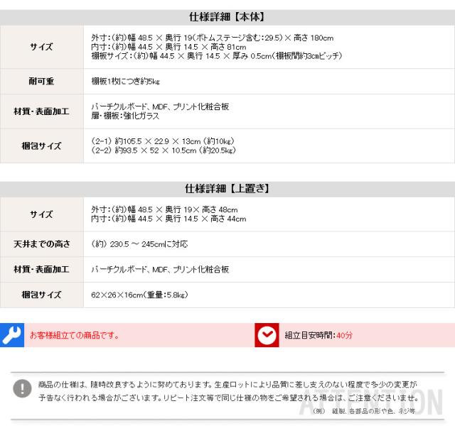 外寸:幅48.5cm×奥行19cm×高さ180cm (ボトムステージ含む:奥行29.5cm)