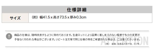 ■サイズ:(約)幅41.5×高さ73.5×厚み0.3cm