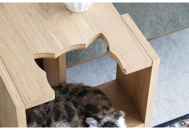 猫型の天板デザインがかわいいサイドテーブル。
