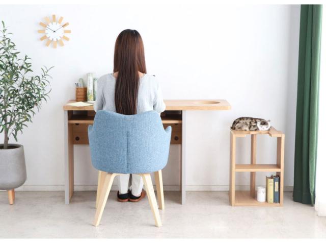 にゃんと一緒デスク サイドテーブル 国産 インテリア リビング ダイニング 机 テーブル 猫 リビングテーブル ダイニングテーブル 日本製 収納(代引不可)【送料無料】