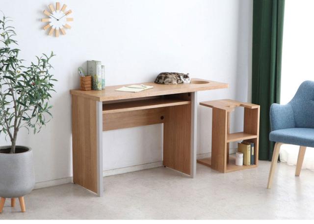 にゃんと一緒デスク テーブル 国産 インテリア リビング ダイニング 机 テーブル 猫 リビングテーブル ダイニングテーブル 日本製 収納 サイドテーブル付き(代引不可)【送料無料】