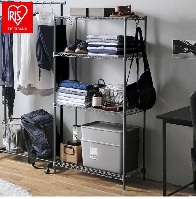 アイリスオーヤマ カラーメタルラック 幅75cm 4段 高さ143cm CMM-75144 ダークグレー スチールラック メタルラック カラー 棚 オープンラック キッチンラック シンプル IRIS OHYAMA(代引不可)【送料無料】