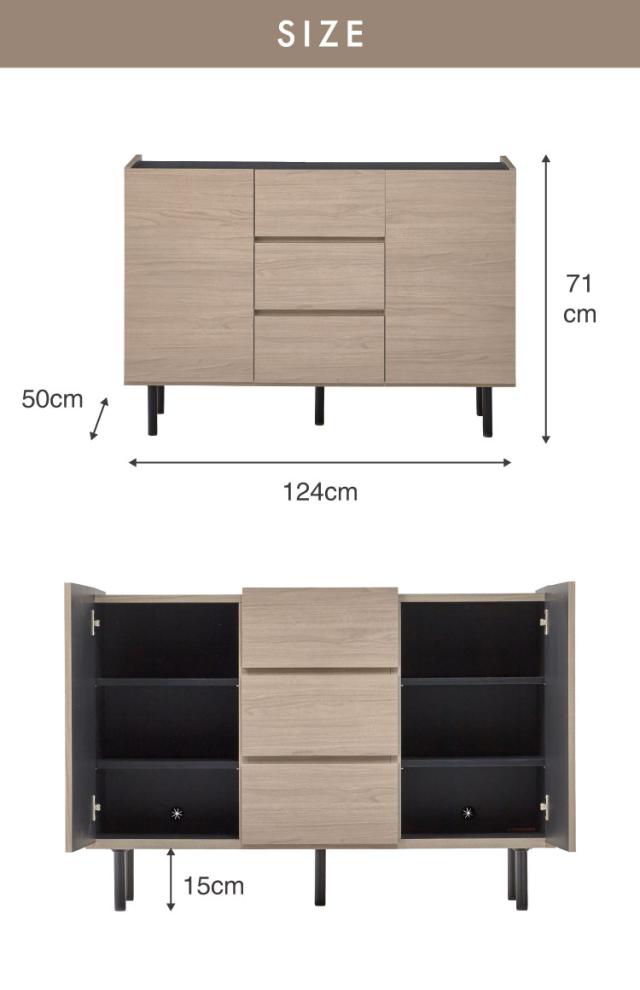 幅124×奥行50×高さ71(脚部高さ:15)cm