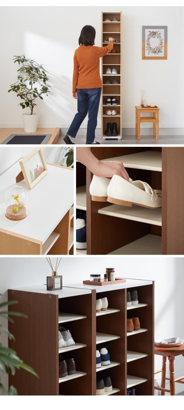 ・水洗いできる棚板を備えているため運動靴や雨で濡れた靴も気にせず収納することができます