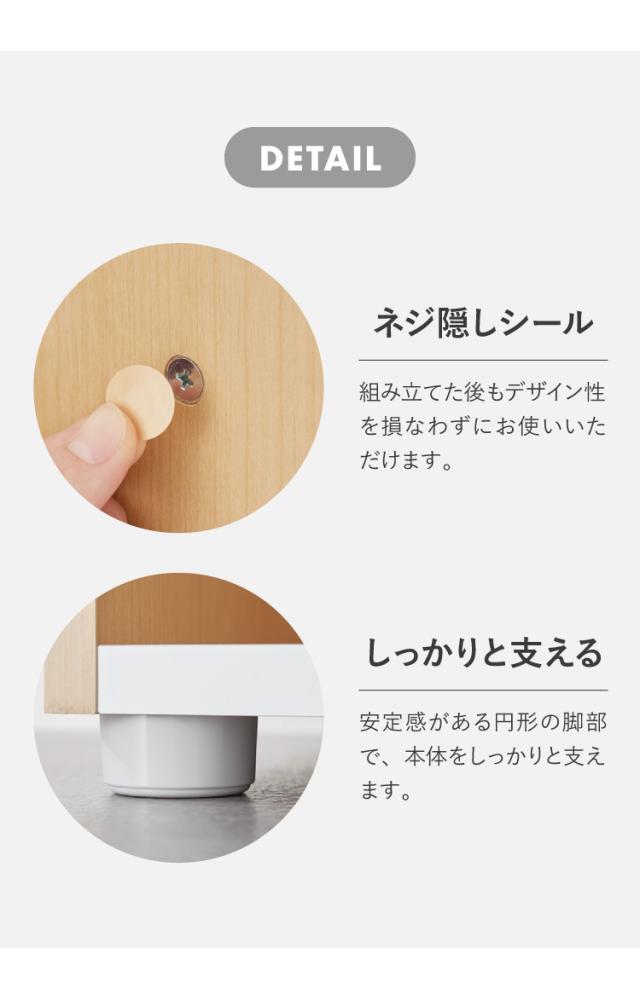 本体:プリント紙化粧繊維板、棚板:塩化ビニル樹脂