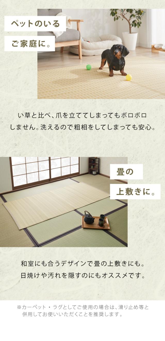 洗える い草調 カーペット ダイニング ラグ 江戸間2畳(約174×174cm) 正方形 敷詰 上敷き 丈夫 日本製 国産 除菌スプレー対応 ござ アウトドア ペット 犬 猫(代引不可)【送料無料】