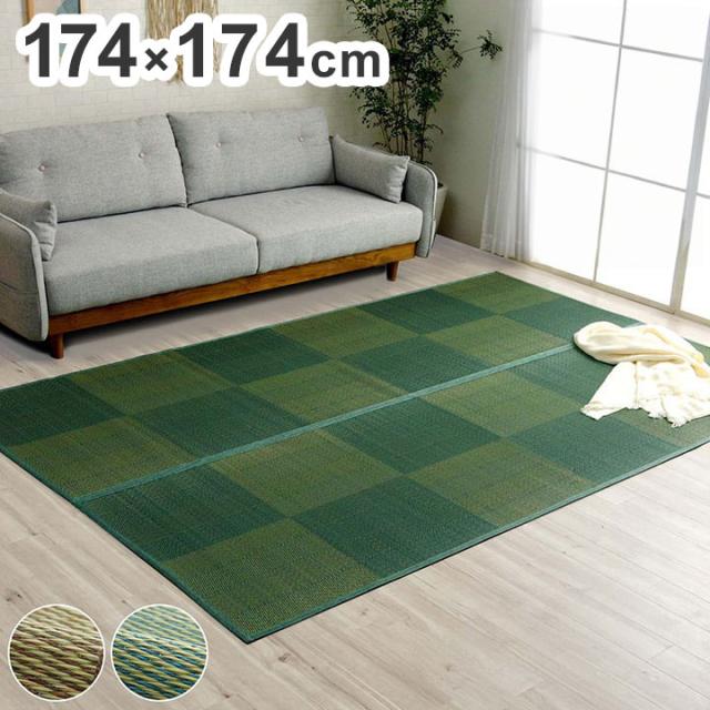 い草ラグ 174×174cm 江戸間2畳 花ござ カーペット 格子柄 ナチュラル シンプル 和室 洋室 裏不織布滑り止め 滑りにくい 抗菌防臭 消臭 お手入れ簡単 夏快適さらさら インテリア おしゃれ(代引不可)【送料無料】