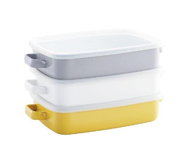 365methods ホーローオーブンディッシュ 浅型M イエロー×ライトグレー 直火 オーブン対応 フタ付き 保存容器 ホーロー 琺瑯 調理用 バット グラタン皿 スタッキング 365メソッド