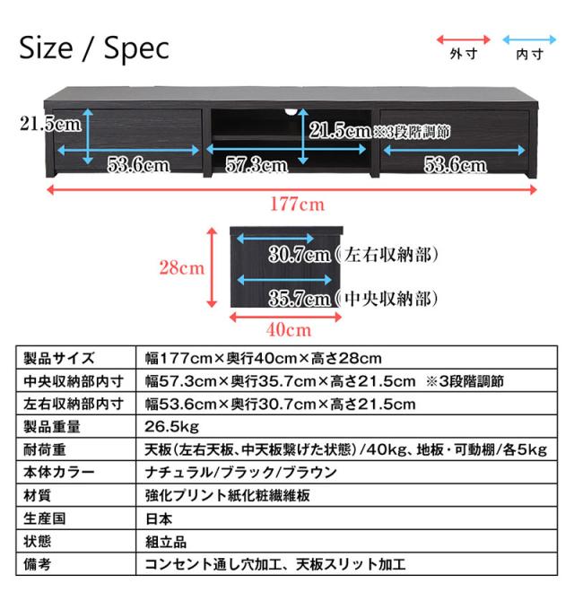 [177cm] 幅177cm×奥行き38.8cm×高さ28cm