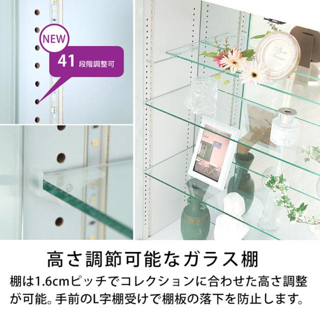 ガラス棚板サイズ:幅78.7cm×奥行33.7cm×厚さ0.5cm、1.6cmピッチ/41段階調整