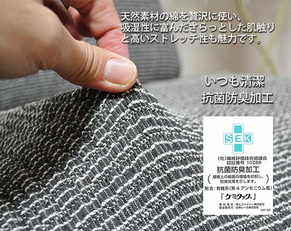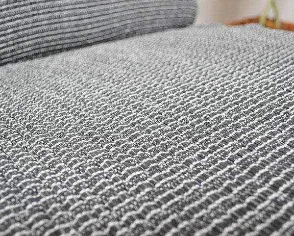 収縮率180%の贅沢なストレッチ素材を使用。綿を76%配合した極上の肌触りと抜群の吸湿性で熱のこもりやすいウレタンや化繊、合成皮革等のソファに最適です。