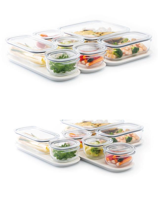 もともと容器だけでもスタッキングが美しく決まる容器ですが、トレーと組み合わせることで更に収納に・食卓に便利にお使いいただけます。