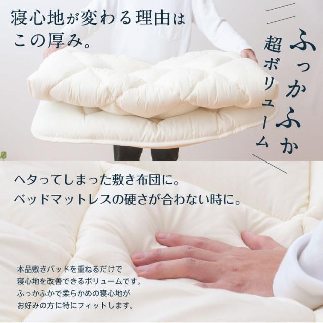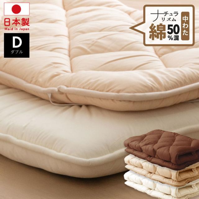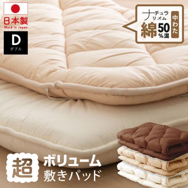 綿50%混 ボリューム敷パッド ダブル 日本製 綿混 ボリューム敷きパッド ダブル 国産 ボリューム ベッドパッド 敷パッド 敷きパット 綿50%使用(代引不可)【送料無料】