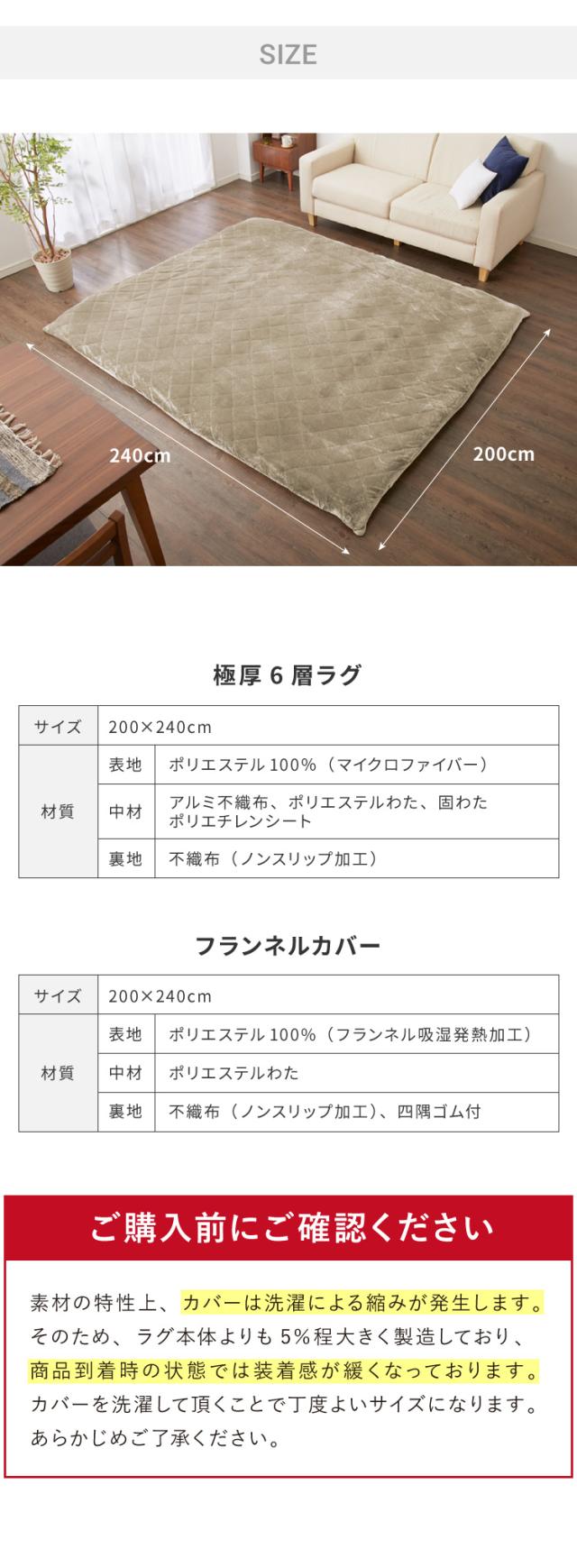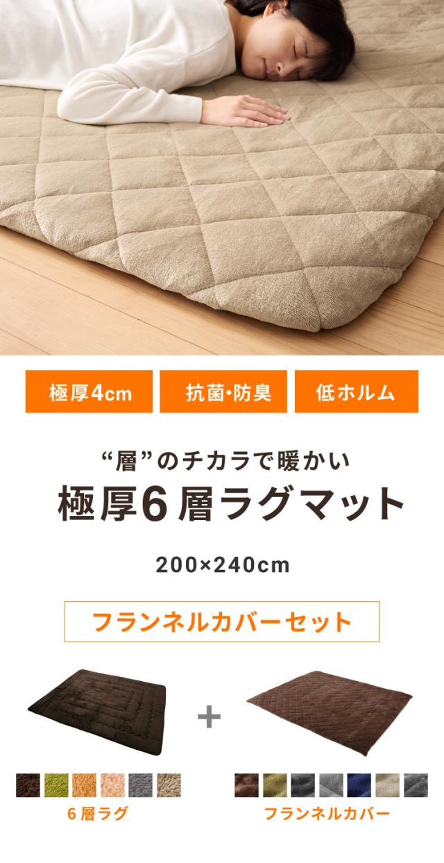 【ラグカバーセット】 極厚6層ラグ 200×240cm 滑り止め付 長方形 6層 約4cm厚 極厚 多層構造 リビング ラグ ラグマット 絨毯 カーペット 抗菌 防臭 低ホルマリン 省エネ【送料無料】