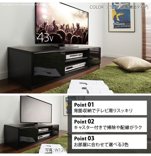 テレビ台 テレビボード リビングボード ローボード 背面収納 TVボード ロビン 幅120 北欧 モダン 鏡面 キャスター付きリビング 木目調 黒 白 茶 おしゃれ(代引不可)【送料無料】