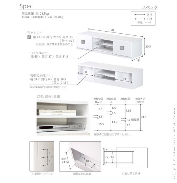 本体:幅120×奥行き41×高さ30.5cm