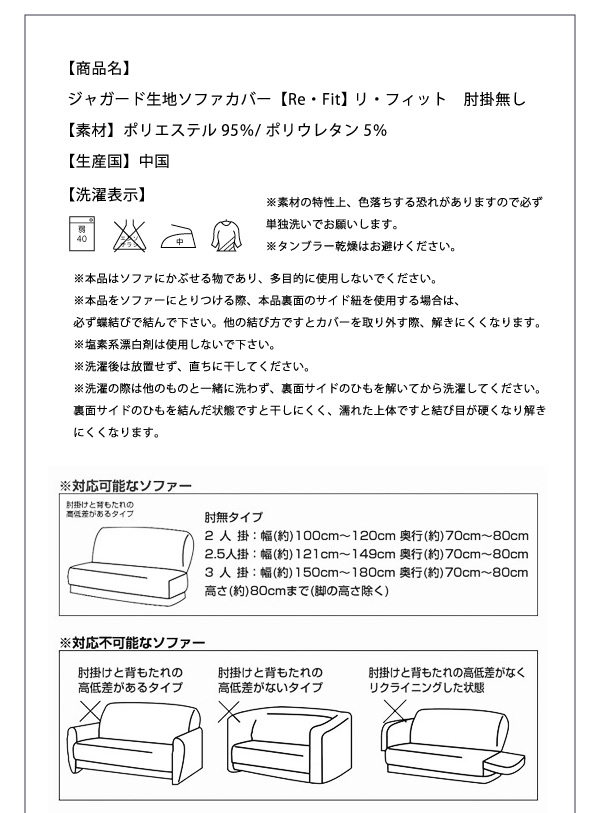 ソファーカバー 2.5人掛け 肘なし ジャガード ジャガード織り 洗える ウォッシャブル 北欧 おしゃれ 2.5人用 肘無し 肘掛けなし フィット ズレない ストレッチ 伸縮 [ReFit] リ・フィット カバー ソファカバー イスカバー【送料無料】