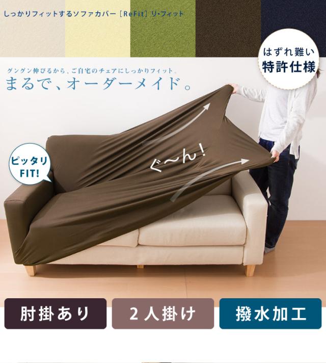 ソファーカバー 2人掛け 肘付き 2人用 撥水フィットタイプソファカバー 北欧 おしゃれ 撥水 洗える ウォッシャブル 汚れ防止 ズレない 伸縮素材 [ReFit] リ・フィット 肘掛けあり 肘つき 肘あり ソファカバー 撥水加工 生地 防水 シミ防止【送料無料】