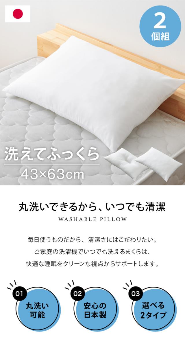 2個組 ウォッシャブル枕 43×63cm 日本製 テイジン中綿使用 頸椎安定型 ホテル仕様 肩こり 首こり 国産 安眠 まくら 洗える 業務用 旅館 ホテル ヌード【送料無料】