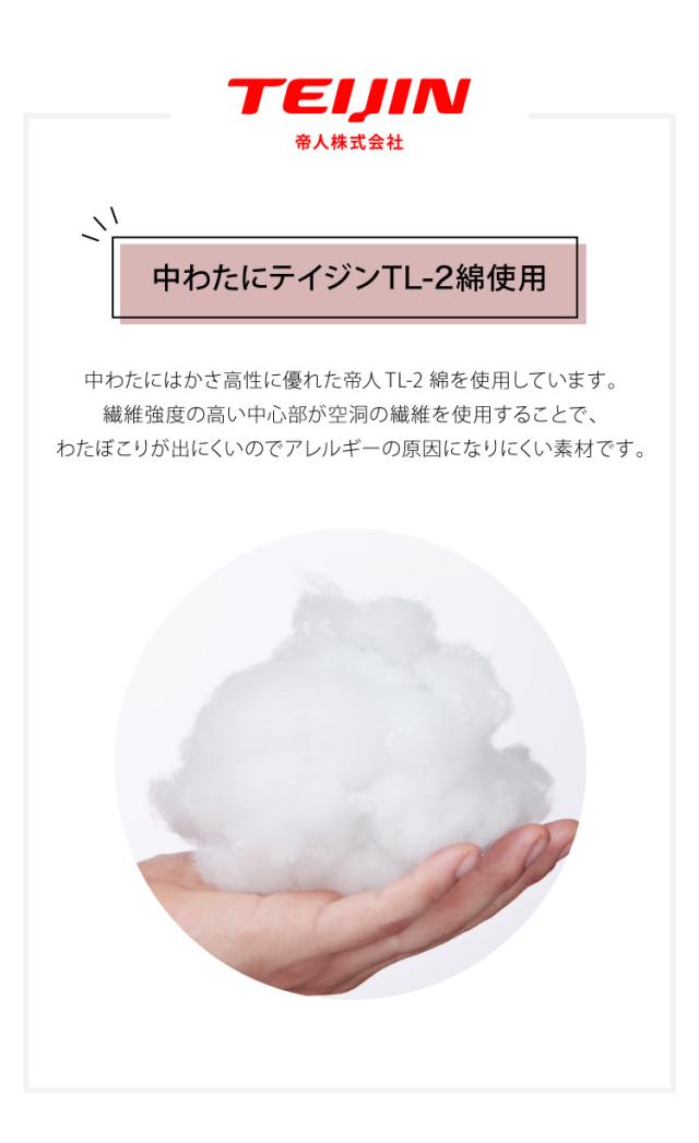 ・日本製 国産一流ブランドのテイジンTL-2綿を使用