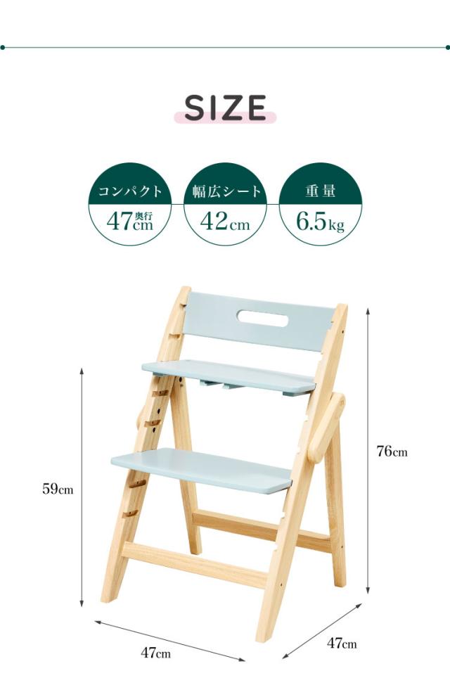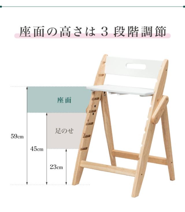 座面高:45cm~59cm(上から5番目~3番目の溝)