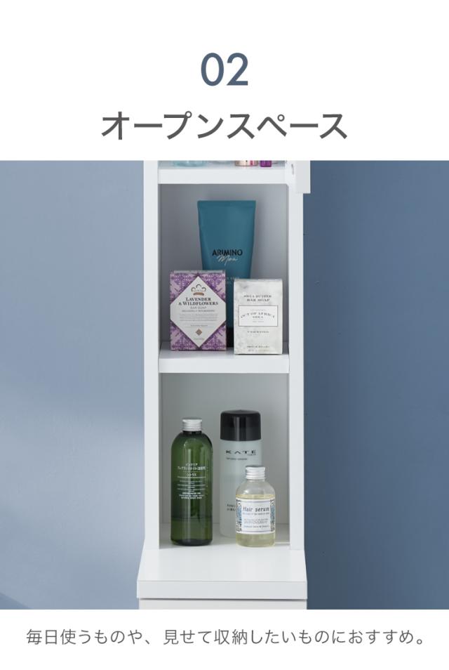 わずかなすき間にも設置できる、幅15cmから30cmまで4タイプ揃えたすき間収納シリーズ。