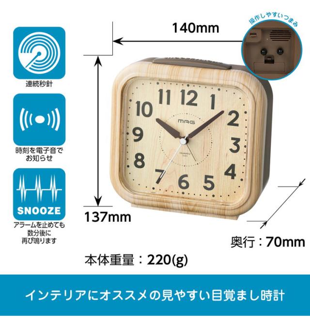 MAG電子音目覚まし時計 グレイン MAG マグ 時計 掛け時計 掛時計 おしゃれ オシャレ インテリア 目覚まし時計 電子音 電子音時計 木目調 T-777 N-Z