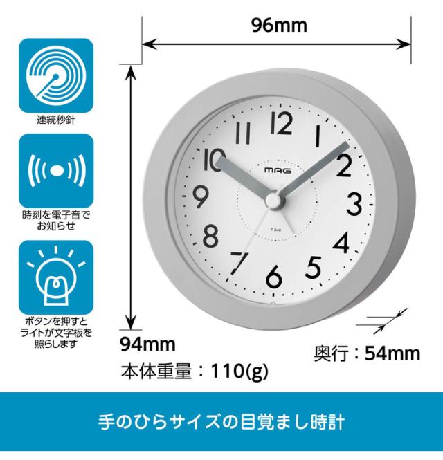 MAG電子音目覚まし時計 ルント MAG マグ 時計 掛け時計 掛時計 おしゃれ オシャレ インテリア 目覚まし 目覚まし時計 電子音 電子音目覚まし コンパクト T-640