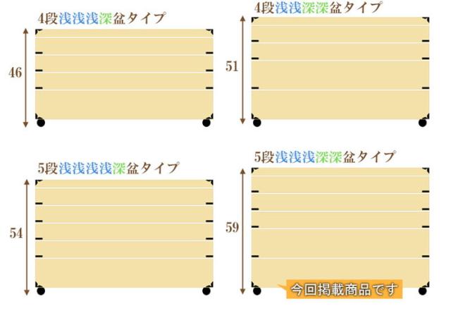 | 4段/高さ46cm | 4段/高さ51cm | 5段/高さ54cm | 5段/高さ59cm |