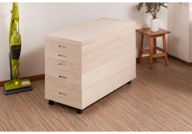 別売りの衣装盆で買い足し積み重ねができるので増える着物と洋服をしっかり収納。