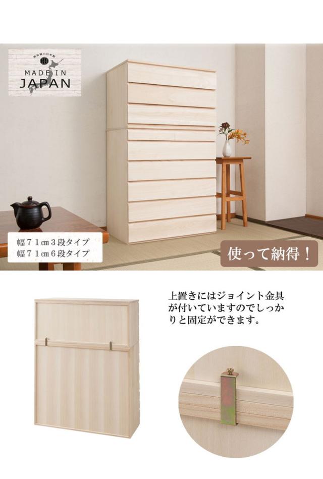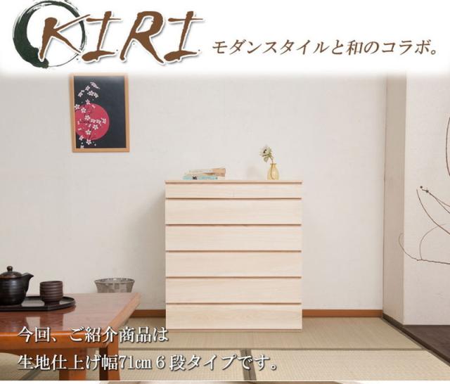 チェスト 日本製 桐 完成品 洋風 収納 たんす 幅71cm 6段 六段 国産 モダン おしゃれ 天然木 北欧 押入れ 木目調(代引不可)【送料無料】