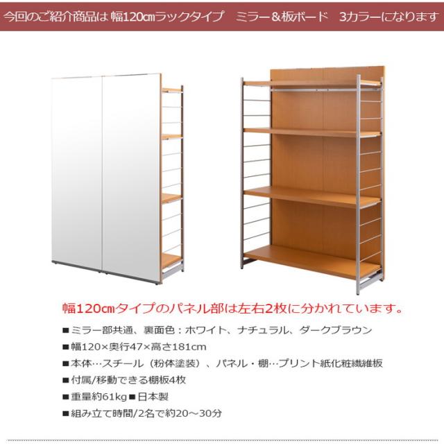 ■商品サイズ/本体:(約)幅120×奥行47×高さ181cm、ラダー間隔:(約)14cm、ミラー:3mm厚