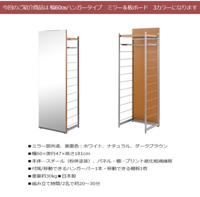 日本製 パーテーション 間仕切り 仕切り リビング 収納 収納ラック 幅60cm ミラー付ハンガー ダークブラウン(代引不可)【送料無料】